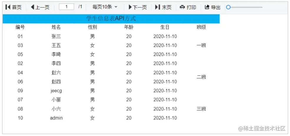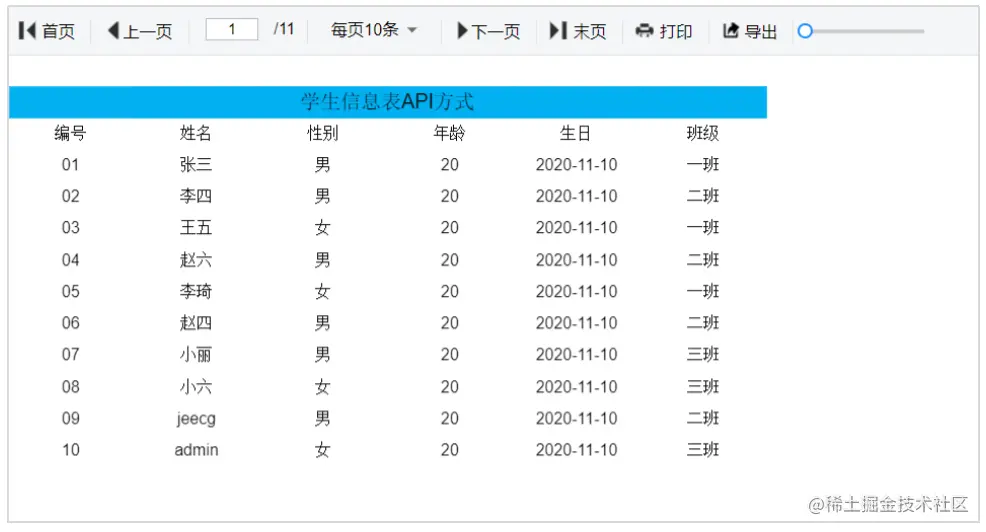 - Api地址:配置的API数据源地址(可以为本地和线上,但必须是JSON类型,如:{"data":"[{}]"});