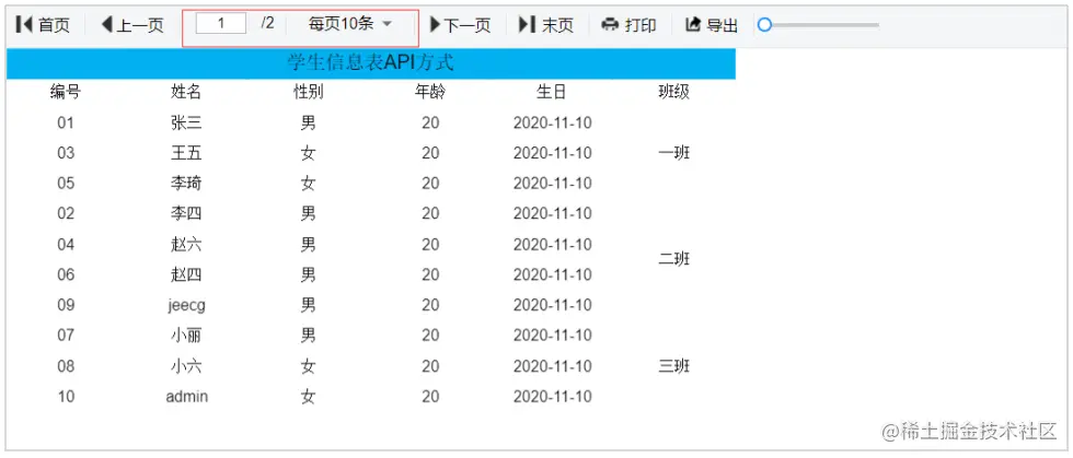 - “pageSize”表示每页显示几条数据;