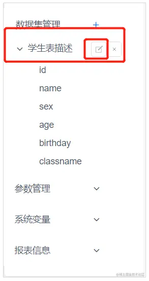1、在数据集管理点击编辑按钮,进入页面