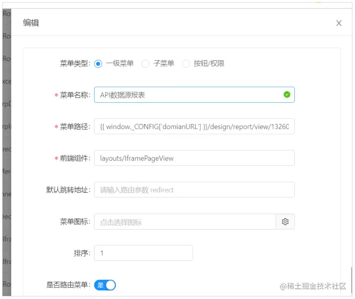 - 是否为路由菜单:是