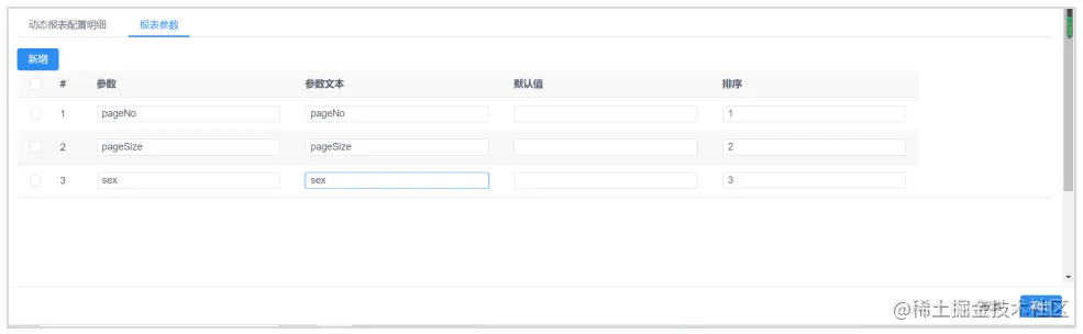 3、在下方报表参数点击新增按钮把我们刚才新增的参数写入