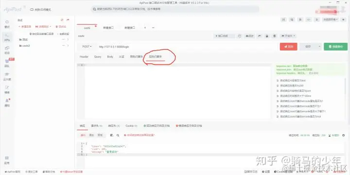 找到apipost的后执行脚本,点击进入后执行脚本功能。