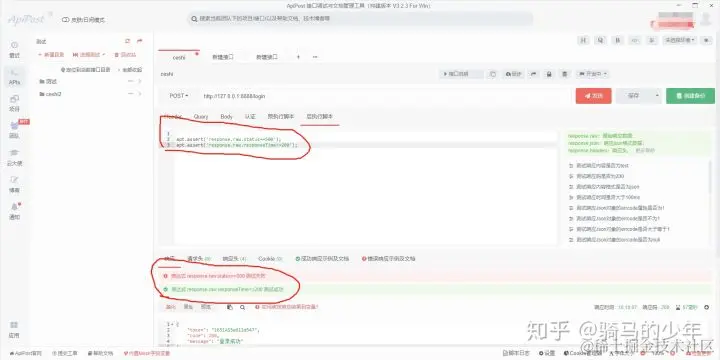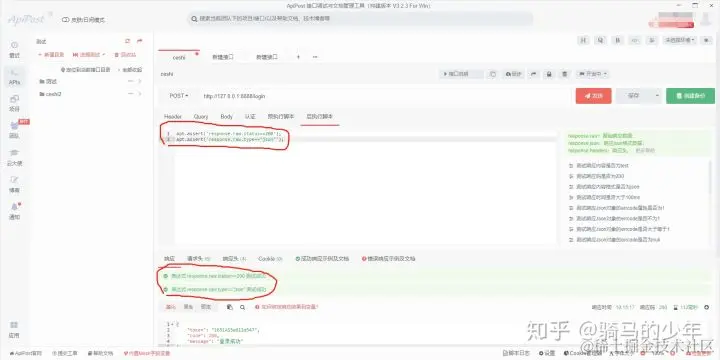因为apipost的断言是 JavaScript语言编写的,所以我们可以自定义断言。