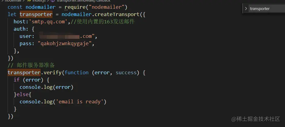 const nodemailer = require("nodemailer") //引入我们的nodemailer