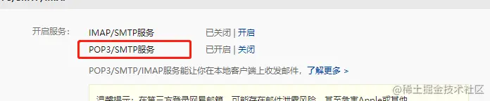 选择开启pop3/smtp服务,你会得到一串授权码类似于这种SJPLBCHBKHIIQCLF。