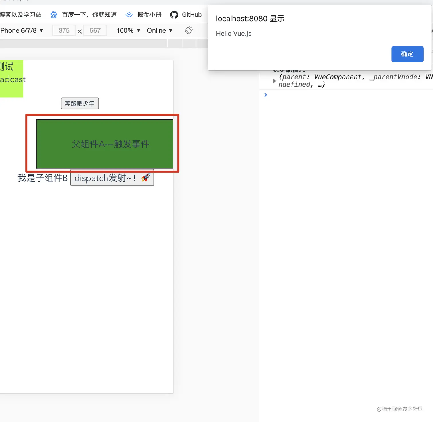 <button @click="dispatchtest">dispatch发射~!🚀</button>