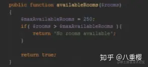为了重构这个方法,我们可以指出 250 表示最大的房间数。为了替换硬编码,我们可以提取它到一个变量 $maxAvailableRooms 。现在对其他开发者来说,它变得更易被理解。