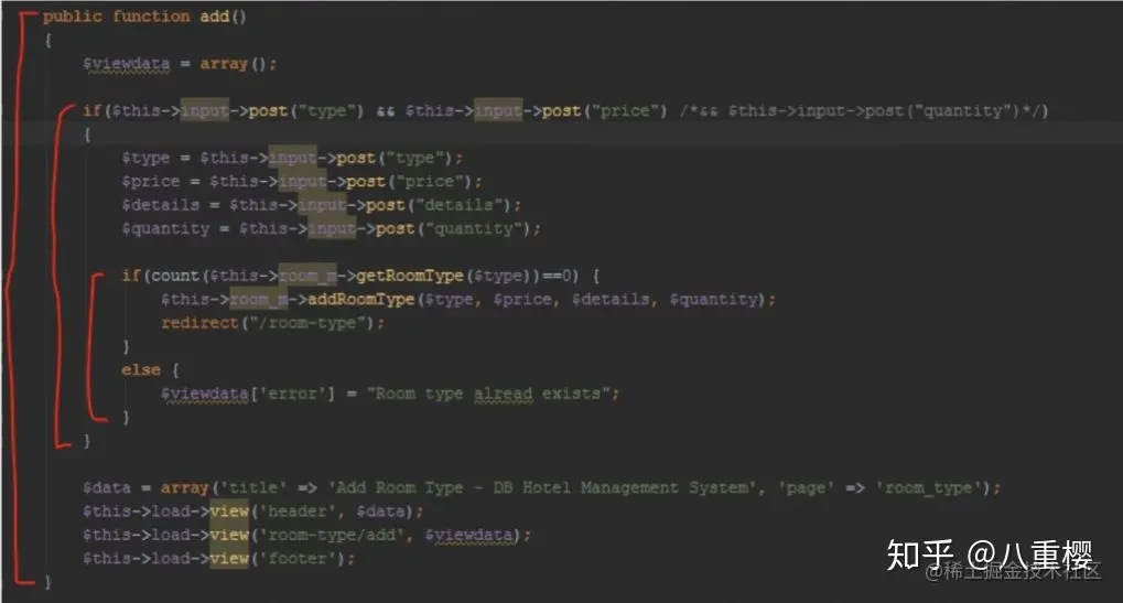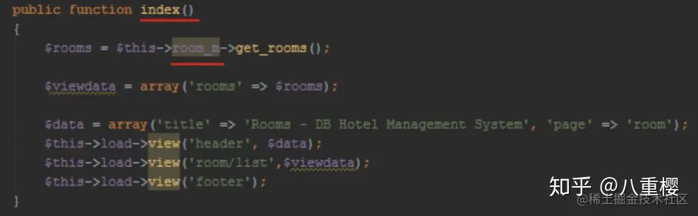 在后面的示例中,你会发现酒店管理系统有两个方法分别是 “index () ” 和 “ room_m () ”。对我来说,我搞不清它们的目的是什么。我认为它应该很容易被理解,如果它们的命名都能够描述自己。