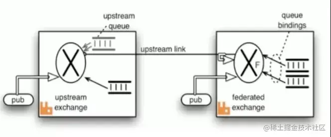 Federation Exchanges,可以看成Downstream从Upstream主动拉取消息,但