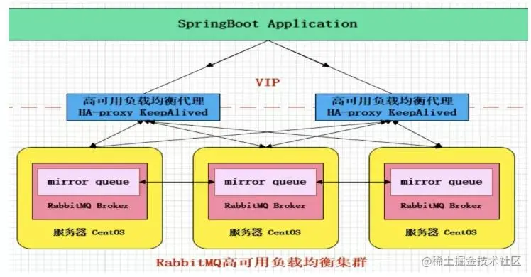 - 镜像队列,是rabbitMQ数据高可用的解决方案,主要是实现数据同步,一般来说是由2-3节点实现数据同步,(对于100%消息可靠性解决方案一般是3个节点)