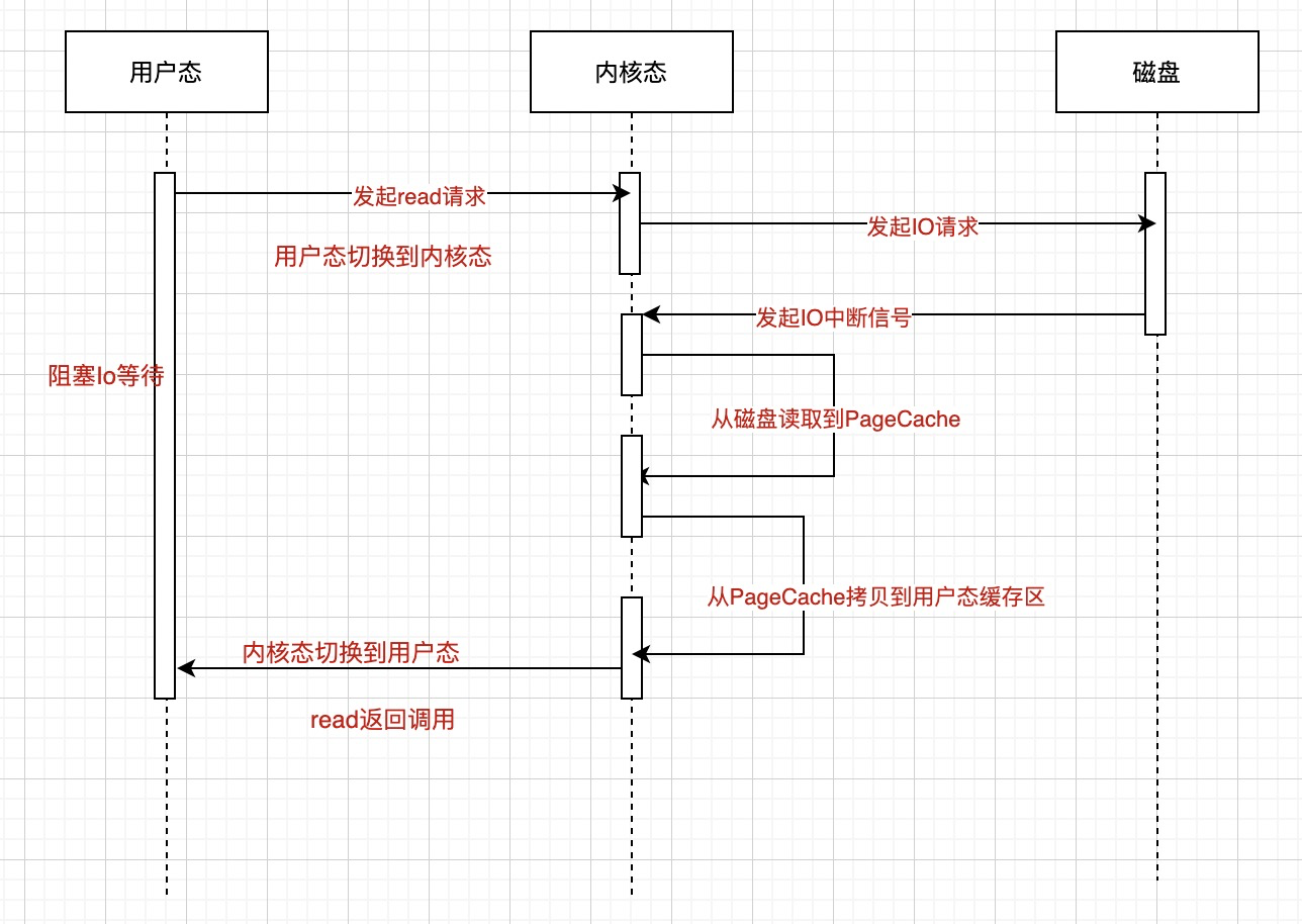 先来看下同步IO的处理时序图