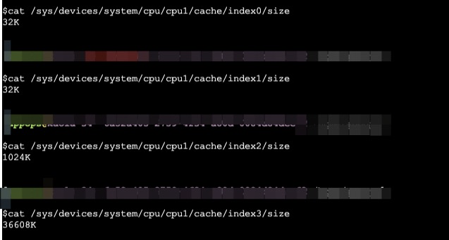 查看每级缓存大小的命令如下,linux。其中可以看到L1缓存为index0、index1分别为指令缓存和数据缓存