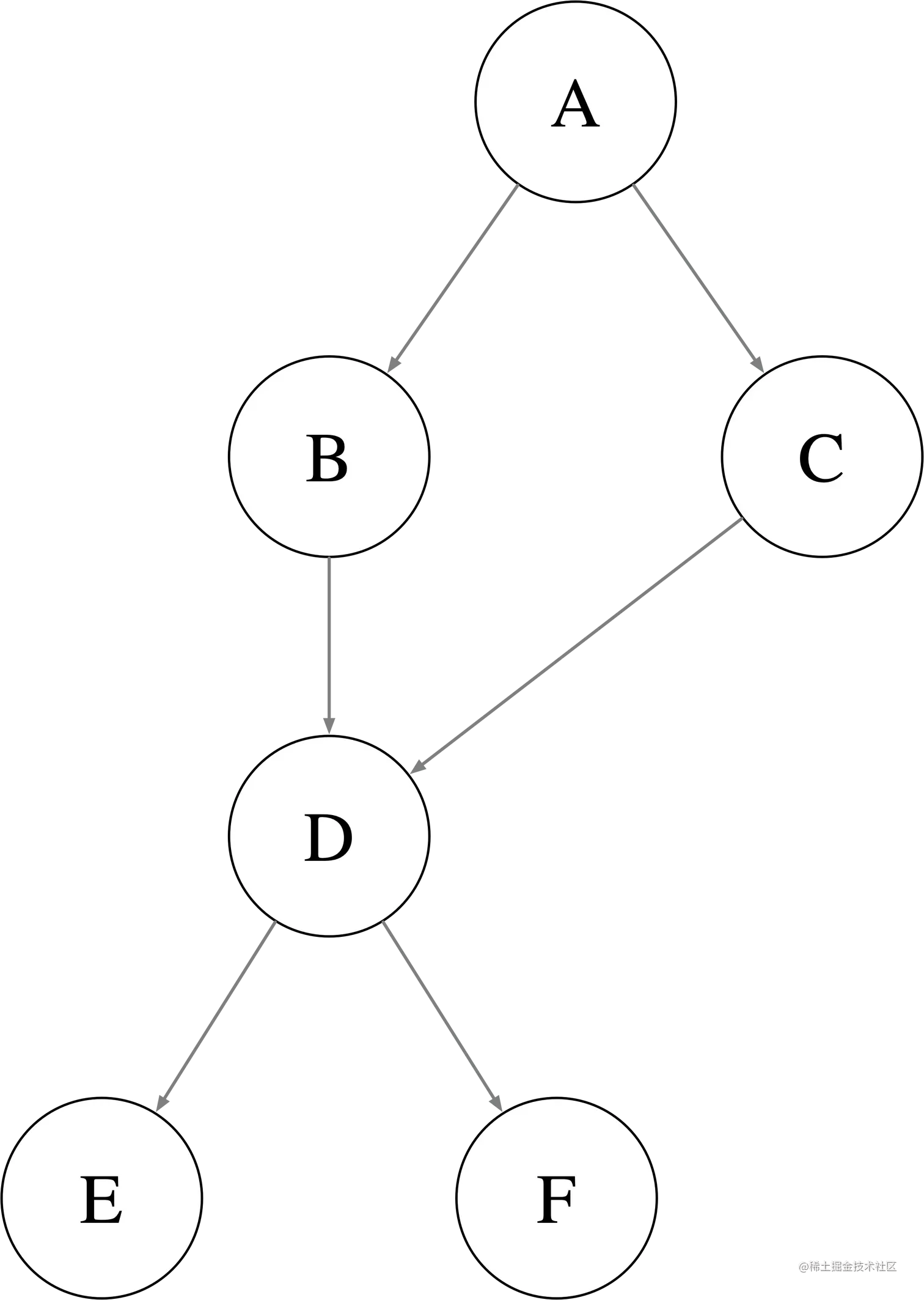 原则:深度优先遍历依赖,并缓存节点剪枝。比如下图:
