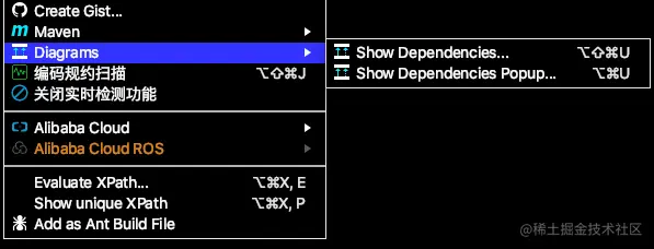 使用 IDEA 的话,可以在对应项目中右击,选择 Diagrams -> Show Dependencies。