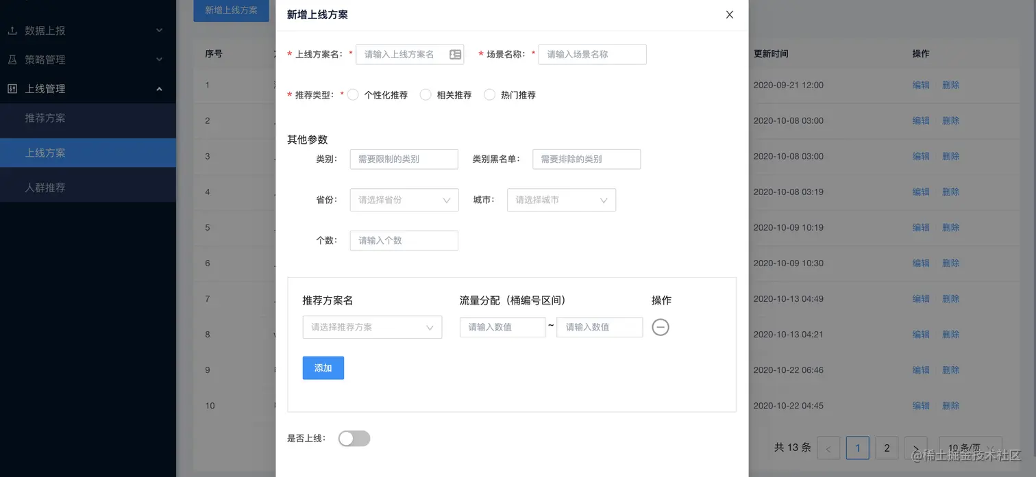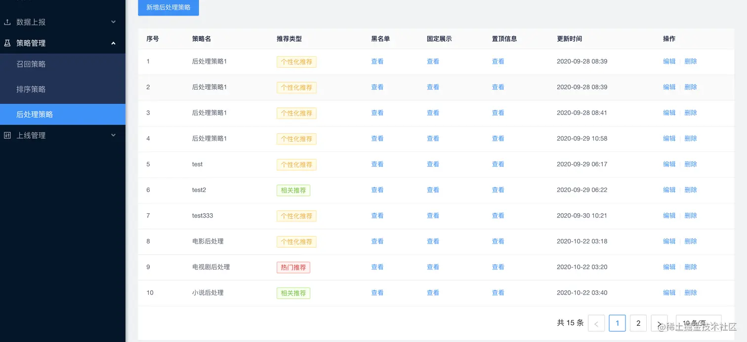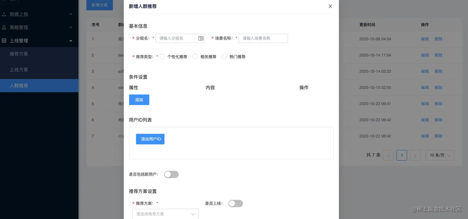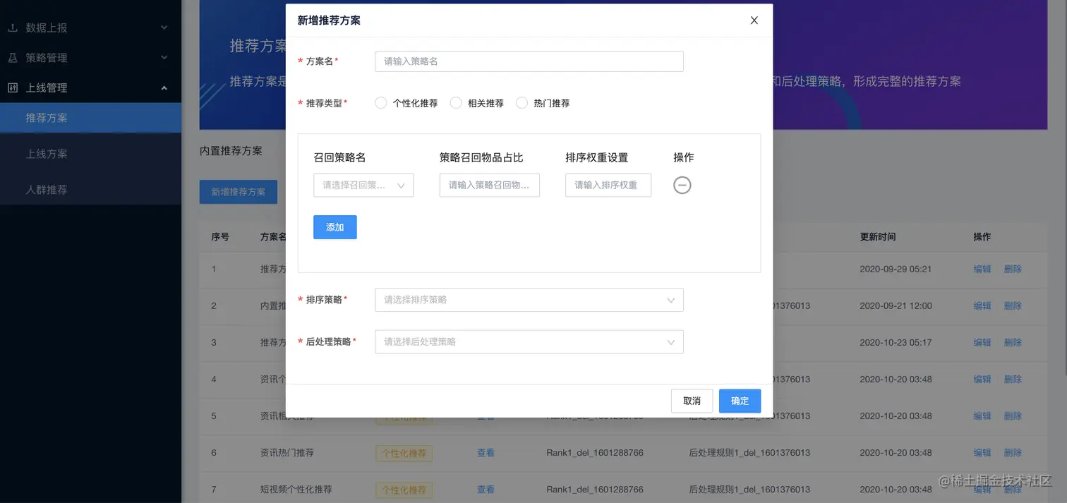 通过这些设置,训练的时候就会根据上线方案里包含的推荐方案,选择相应的召回,排序,后处理策略,完成三步走的训练,从而形成一个性能和响应兼顾的推荐列表!