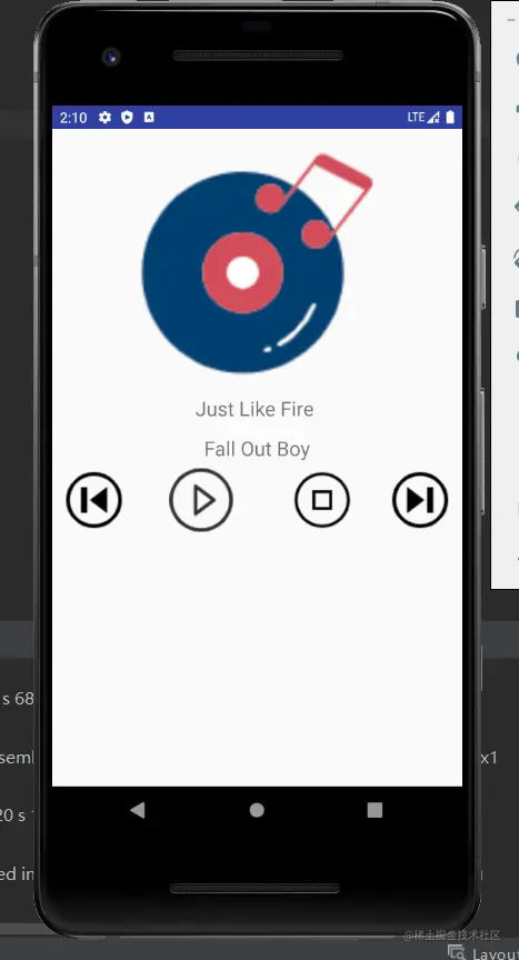 使用Android Studio,了解并利用其中的Service和Broadcast机制完成一个简易的音乐播放器。这个播放器可以完成:在音乐正在播放时,点击播放键暂停,未播放时,点击播放键音乐继续播放,点击stop键实现停止播放,点击上一首,下一首实现音乐播放顺序的转换,在播放音乐时,显示正在播放音乐的标题和演唱者名。