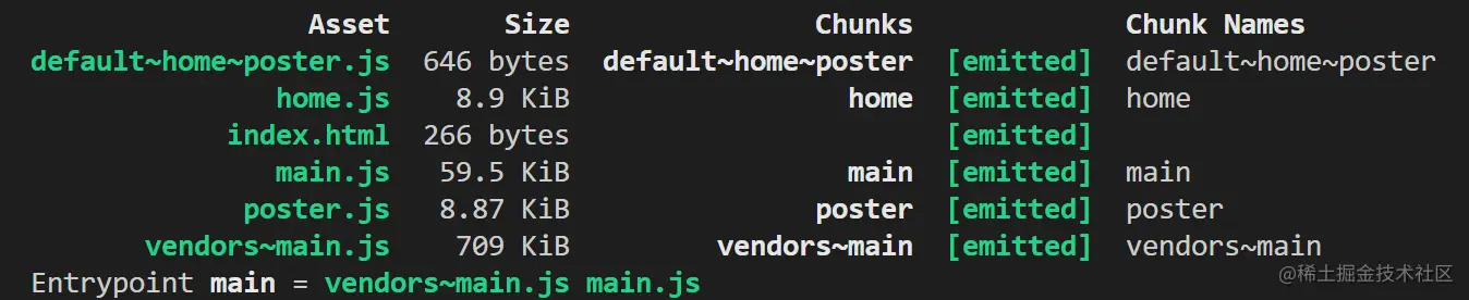 我们希望的打包结果是:(1)node_modules里的文件不常更新,单独打包成一个包。(2)home和poster各自打包,根据路由按需加载。(3)自己写的公用代码更新频率介于库文件和业务代码之间,单独打成一个包。