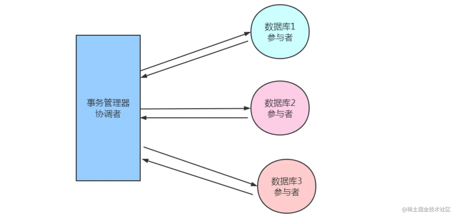 2PC(Two-Phase Commit) 即两阶段提交,是将整个事务流程分为两个阶段:准备阶段(Prepare Phase)和提交阶段(Commit Phase)。
