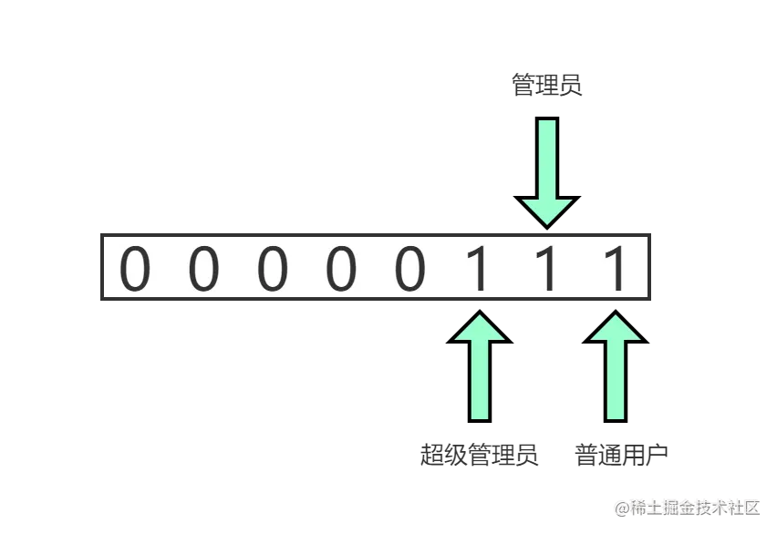 假设用户已经具有普通用户角色,我们需要为其增加管理员角色,这就是新增角色,与之对应还有删除角色和查询角色,这些操作需要用到为位运算,说明详见代码注释。