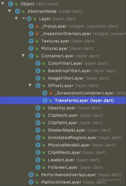 TransformLayer 继承自 OffsetLayer 是 layer tree 的根节点,layer 如其名,主要做矩阵变换。