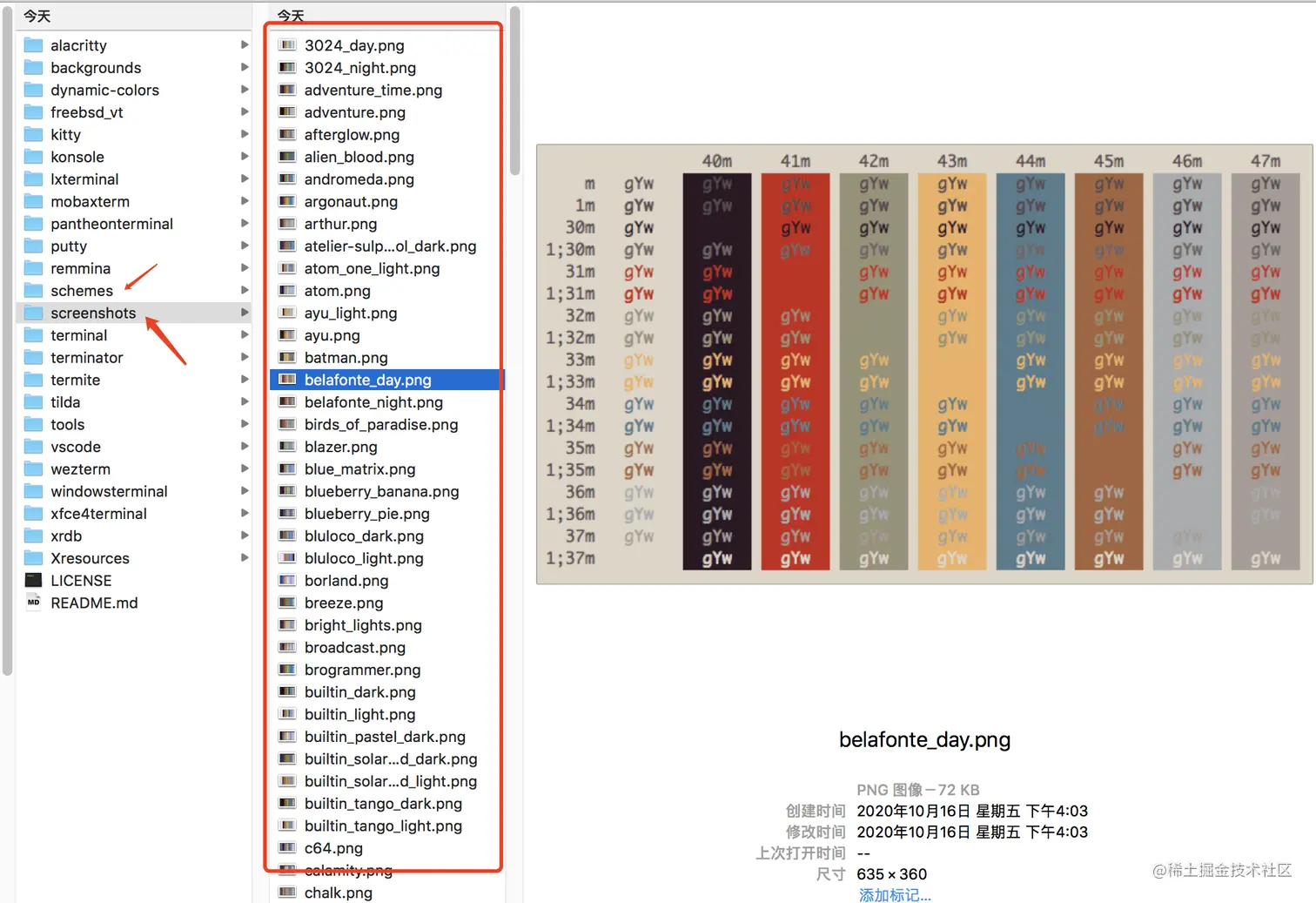 screenshots 则是各种色彩主题预设的预览图。