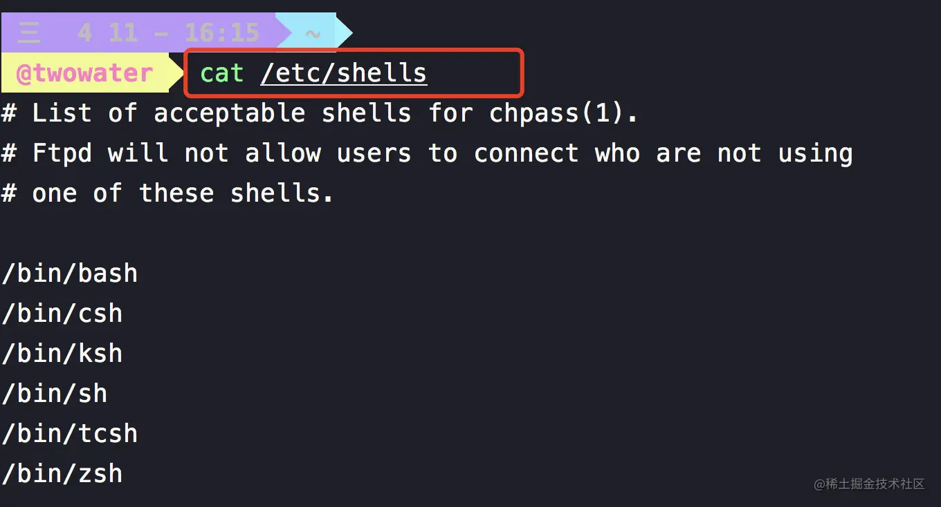 Linux 下默认的是 bash ,macOS 在 Catalina 之前的版本默认也是 bash ,后面随着 zsh 越来越流行,macOS 开始将 zsh 作为默认的解释器了。