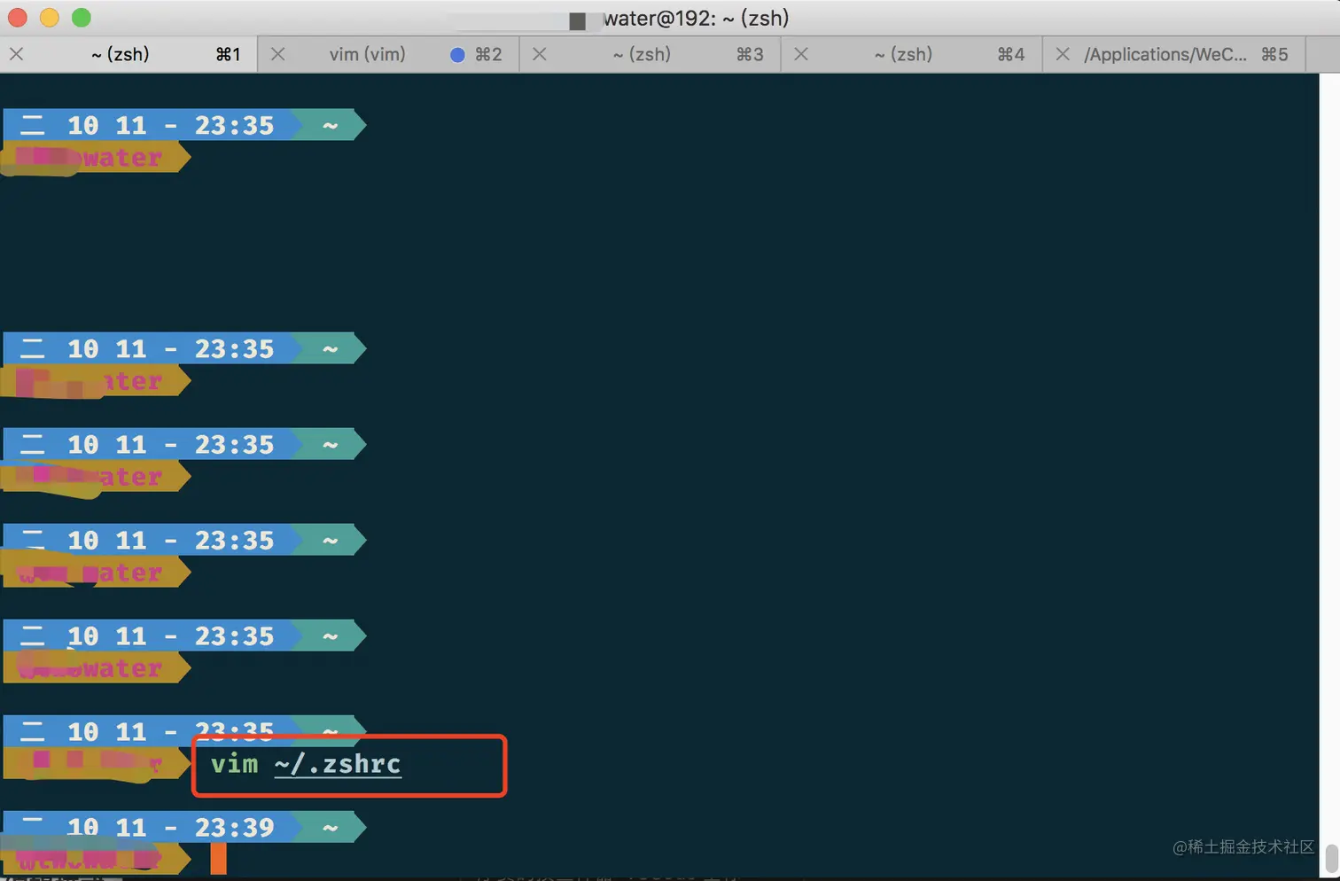 vim ~/.zshrc