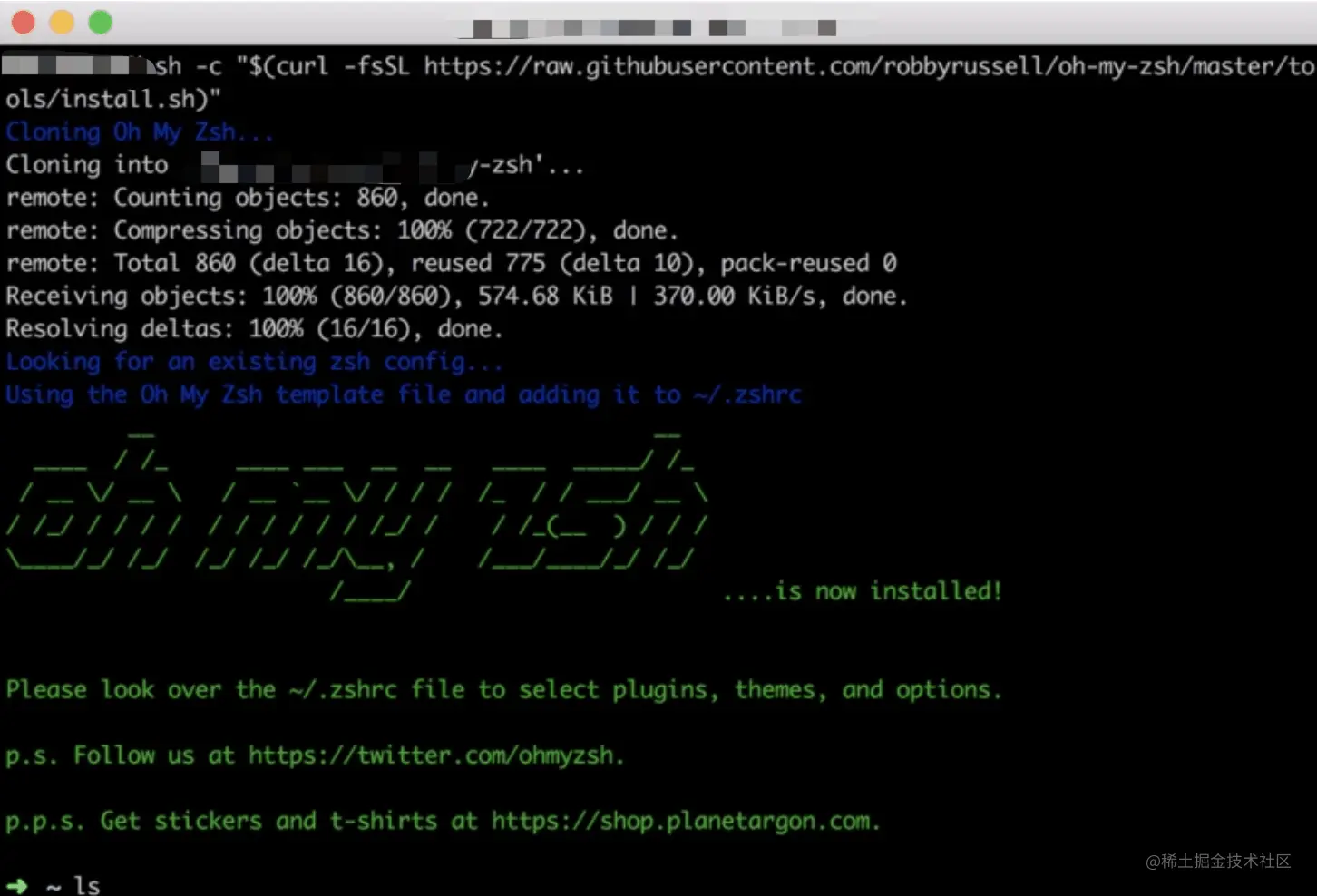 安装 oh-my-zsh 的方式有两种,使用 curl 或 wget ,看你自己的环境和喜欢进行选择了。