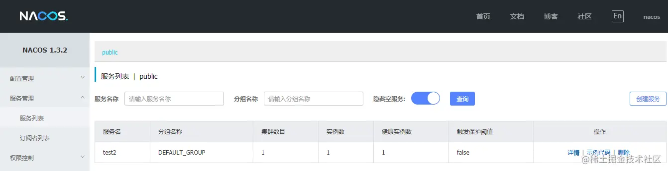 验证访问 Nacos服务ip:8848/nocas服务配置即出现相应列表