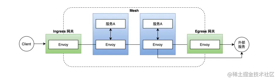 - 依赖于Envoy实现的Sidecar