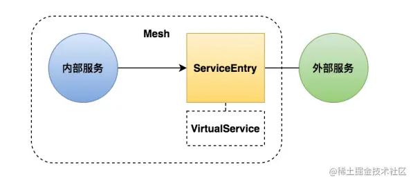 接下来我们说一说服务入口(Service Entry),他是作用是添加外部服务到网格内,管理到外部服务的请求。