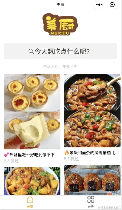 小程序开发之旅.... 小佐_小佑 2020-11-13 143 阅读1分钟 最近做了个小程序,是个菜谱教程系的小程序,具体开发流程可以参考我的博客,地址:blog.csdn.net/Smell_rooki… 贴出部分界面: