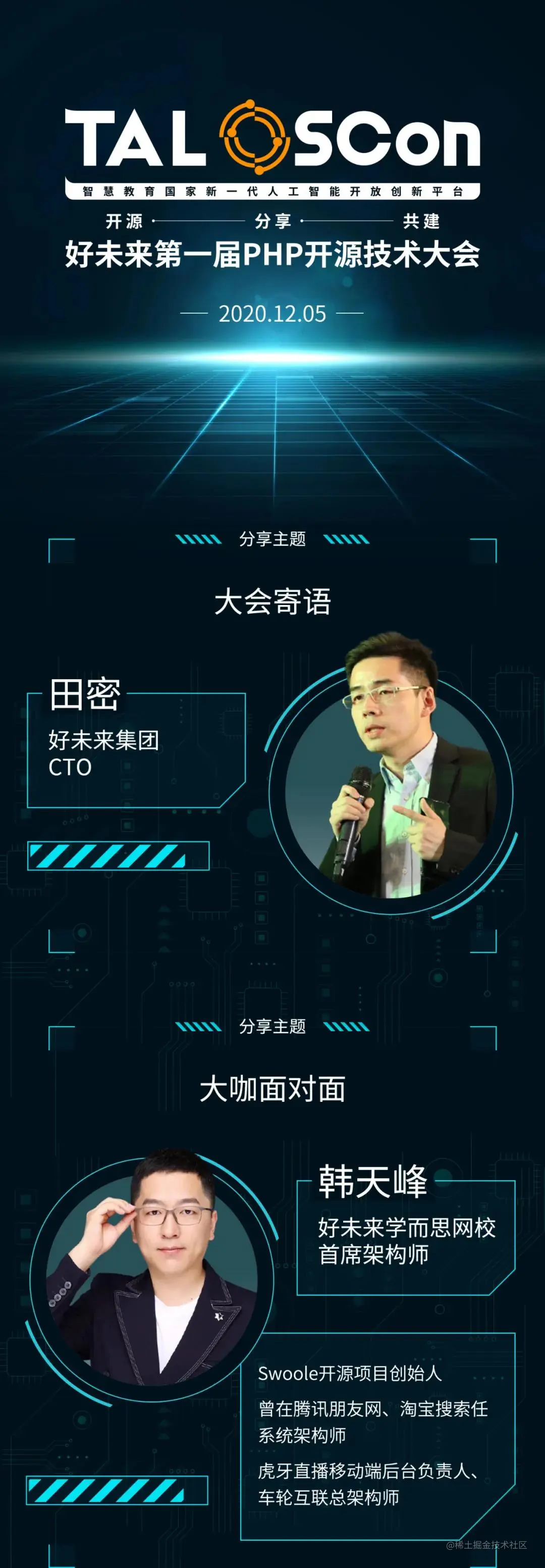 本次大会将以OMO的形式,于线上、线下同步进行。目前报名通道已正式开启,在大会官方网站(好未来PHP开源技术大会)、开源中国等平台均可报名参会。虽然受疫情影响,大会组委会还是坚持在线下保留了一部分名额限量发售,力争给技术伙伴创造一个零距离热烈交流学习的技术氛围。无法线下赴会的技术伙伴也欢迎登记报名,通过线上直播参与到这场技术盛宴中来。