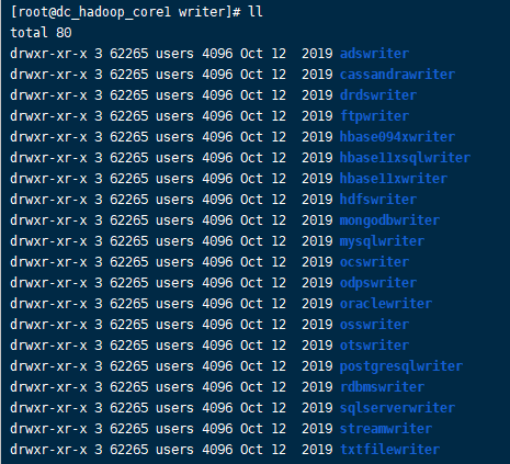 3.1 Datax最重要的两个组件,一是Reader负责读取数据源,二是Writer负责写数据目的地。在datax的plugin目录下,会有着reader和writer两个目录,在reader目录下的文件夹,代表datax可以与对应的数据库组件建立连接,从而读取数据,其实datax对应的reader文件夹下都是对应的jdbc连接jar包。而writer目录下,则是可以进行写入的数据库组件。
