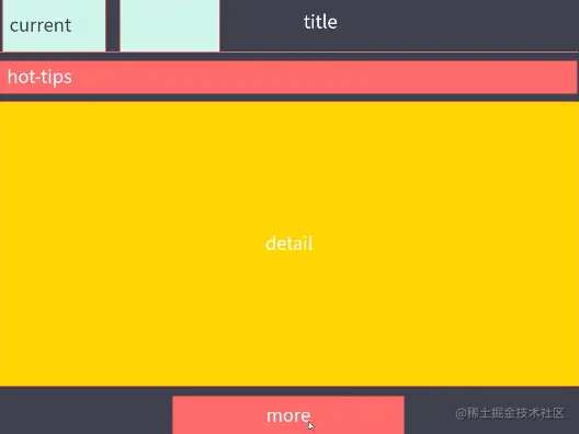 标题部分:浮动制作,当前展示的部分标签使用current的类名进行标记,设置特殊样式。