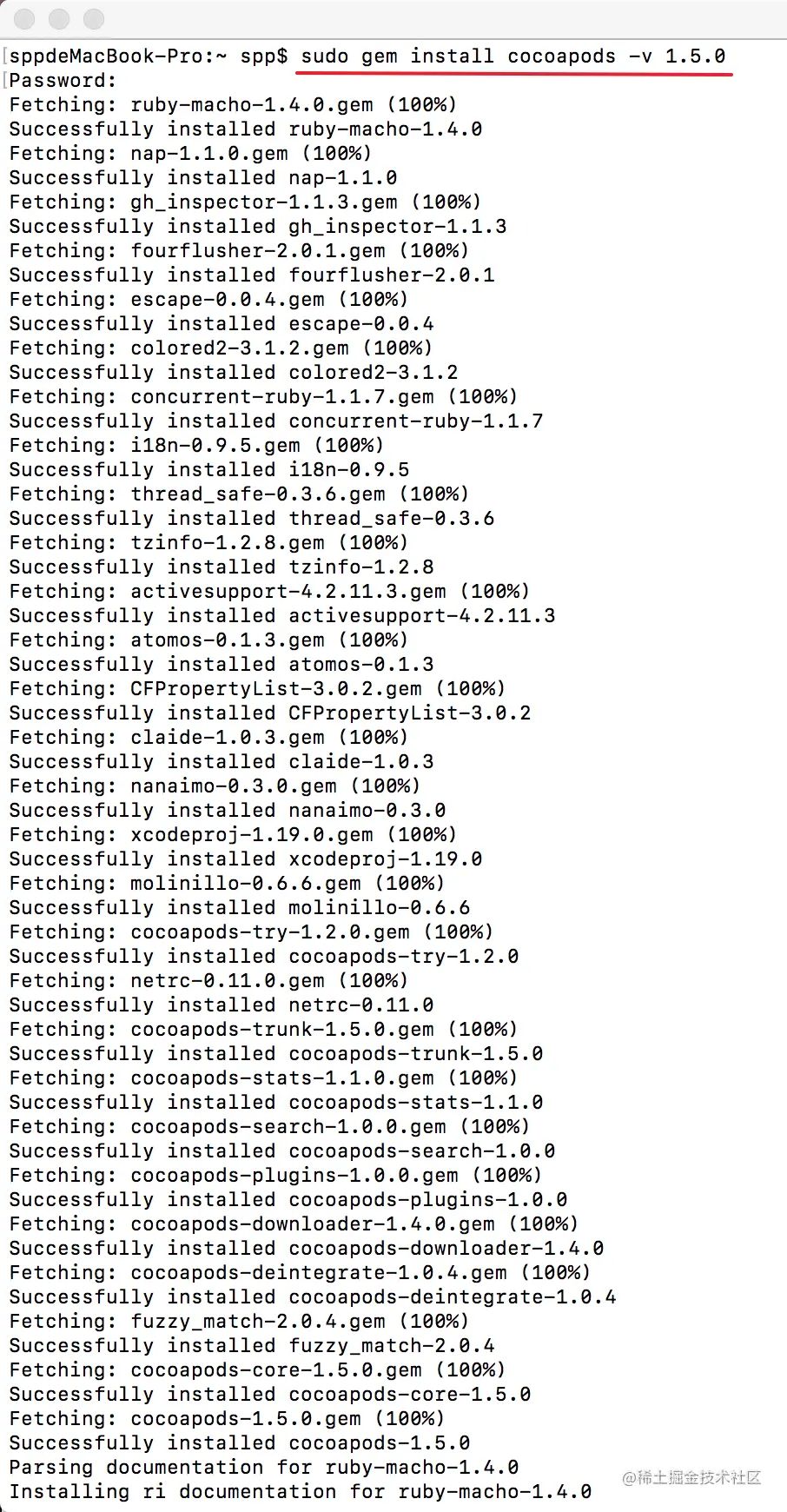 sudo gem install cocoapods -v1.5.0安装完成