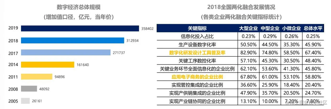 随着数字化进程的加快,中国数字经济近几年已成为国民经济中最为核心的增长之一。根据中国信通院《中国数字经济发展白皮书(2020)》数据显示,2005年至2019年期间,我国数字经济占GDP比重由14.2%提升至36.2%,数字经济增加值规模由2.6万亿元扩张到35.8万亿元。