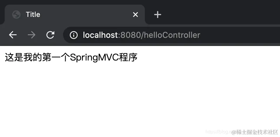 浏览器中显示出了模型对象中的字符串信息,就说明这个超级简单的Spring MVC程序执行成功。