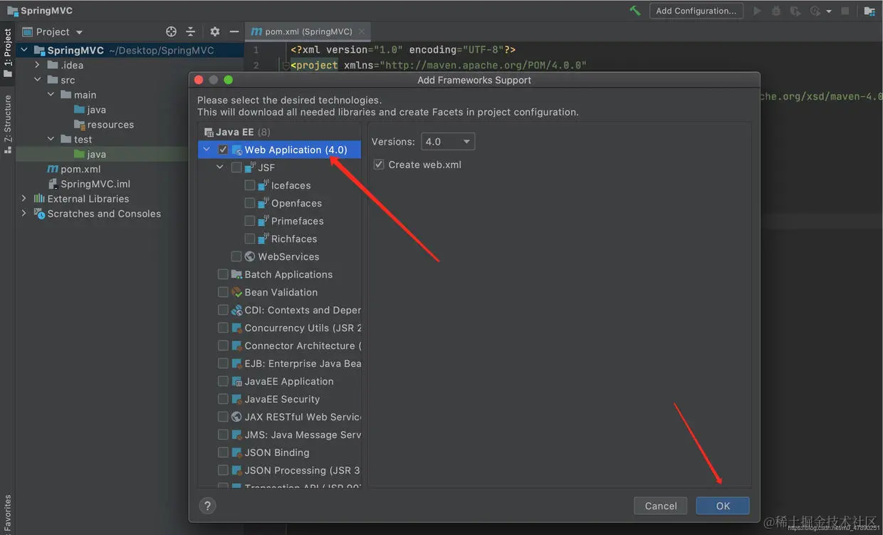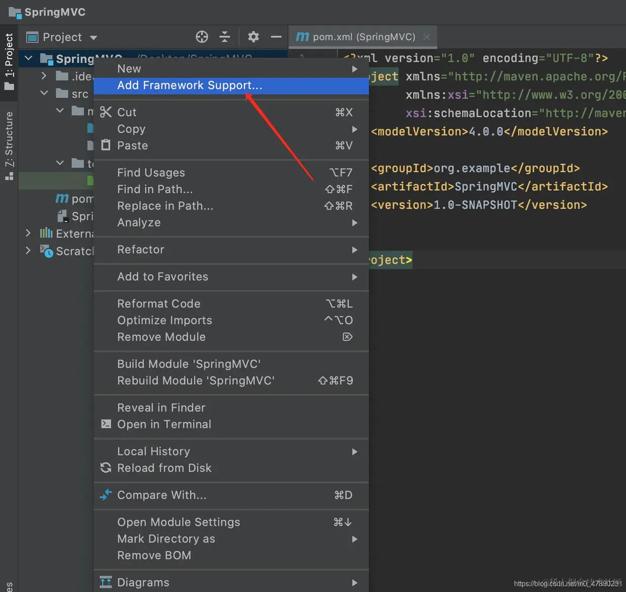 步骤3:创建完Maven项目后,点击项目名右键,选择添加框架支持(Add Framework Support…)