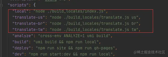 package.json脚本配置,执行 npm run translate-us 即可自动翻译,并输出到指定目录