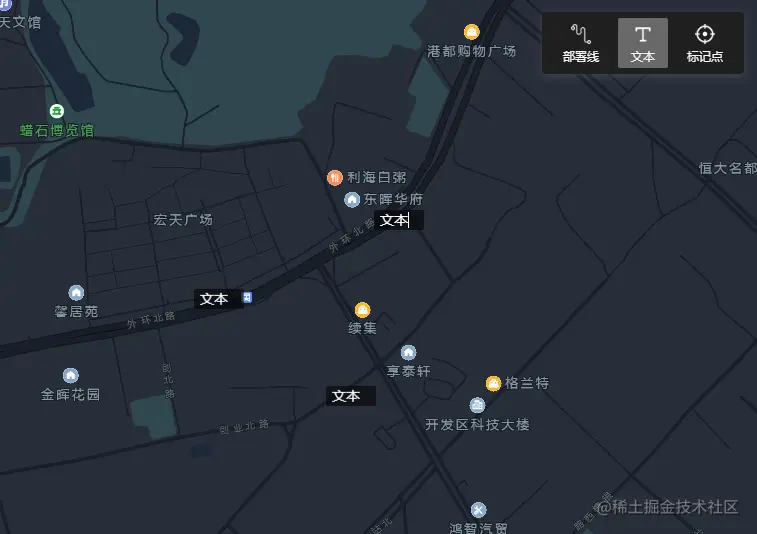 其中文本的需求就是可以点击地图后生成输入框,输入完成后保存当前文本信息并保持位置不变,看了文档后决定使用自定义DOM覆盖物(DOMOverlay)这块来实现,以下是实现过程