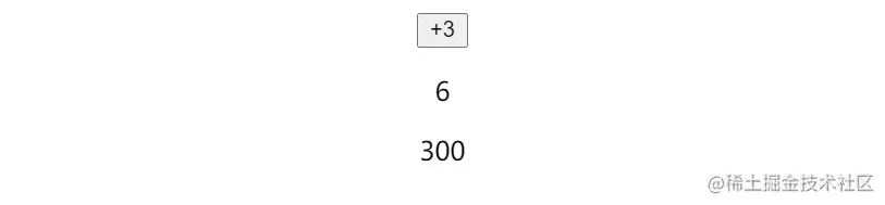 - 上面的代码同样存在一个明显的 bug,当第一次点击 +3 的按钮后,a 的值并不会 *3,而是 1,这就是和上面的问题一样,存在一个延迟,第二次再点击 a 才会 *3