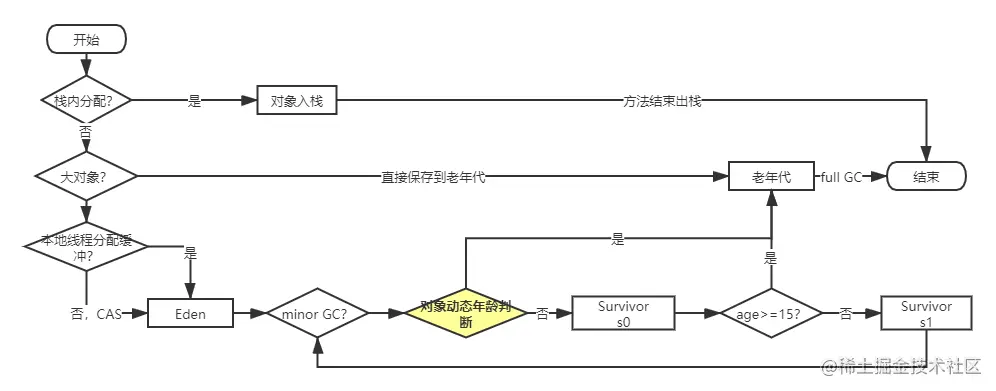 JVM在判断大对象时,会将大对象直接放入老年代。