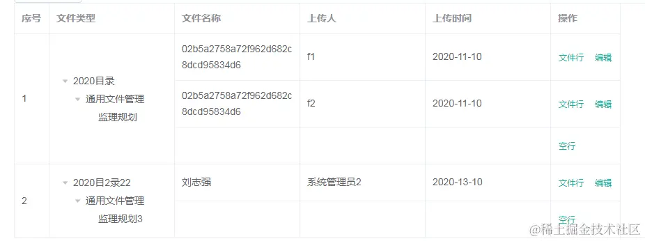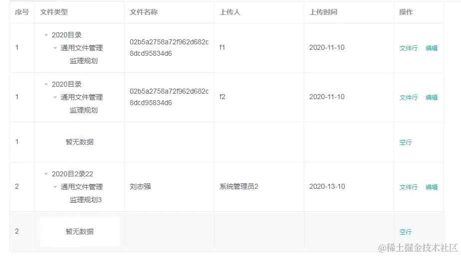 //根据每个类型的文件数组长度去push数据row,实现每一条文件已一行