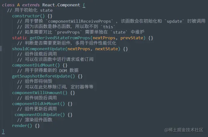 1. 该方法是一个 static 方法意味着这个方法是属于 React.Component 类的方法,所以方法内是无法使用 this 的,这就意味着无法使用 this.setState 来更新 state,所以这个方法直接通过返回对象的形式来更新 state,如果某些 props 的情况不需要更新 state,那么就返回 null 就好。实际上这个方法和 componentDidUpdate 搭配使用,就能覆盖 componentWillReceiveProps 的所有使用场景了