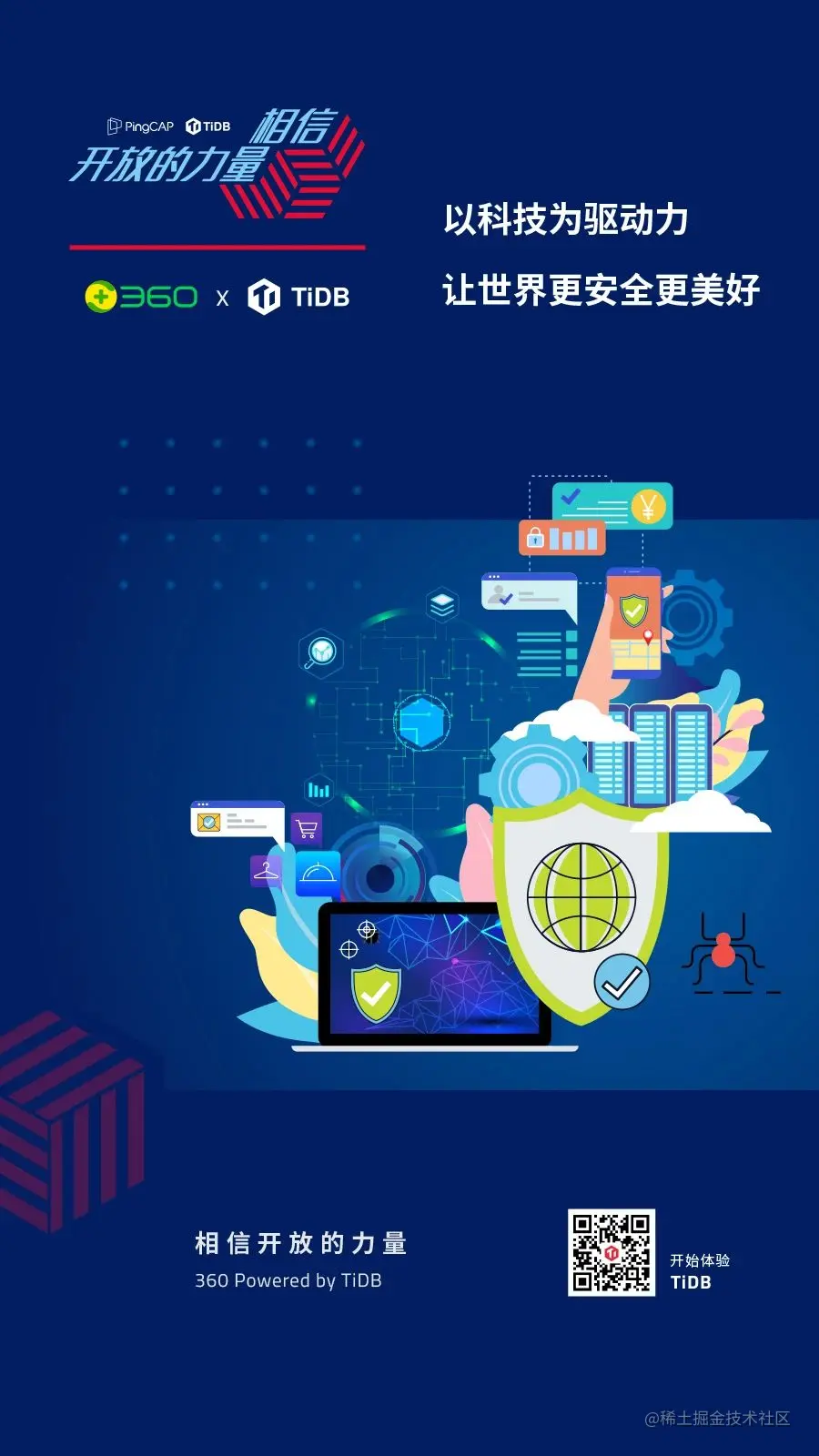 「我们已经用起来了」,是我们最喜欢听到的话,简简单单几个字的背后代表着沉甸甸的信任和托付。从今天开始,我们将通过**「相信开放的力量」**系列深度案例分享,从业务的角度,看看一个数据库为各行业用户带来的业务价值。 本篇文章将介绍 TiDB 在 360 网盾业务、智慧商业业务、广告物料数据业务等核心场景的应用与实践。