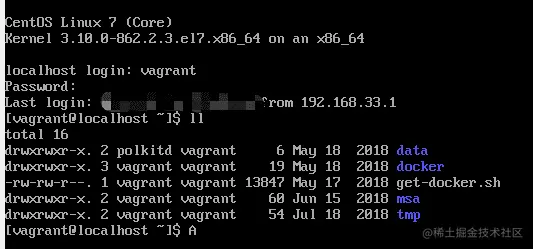 保存后,执行 vagrant reload,就会在启动虚拟机的同时,打开 VirtualBox 的GUI 界面。这时就会在 GUI 中看到需要我们输入账号与密码: