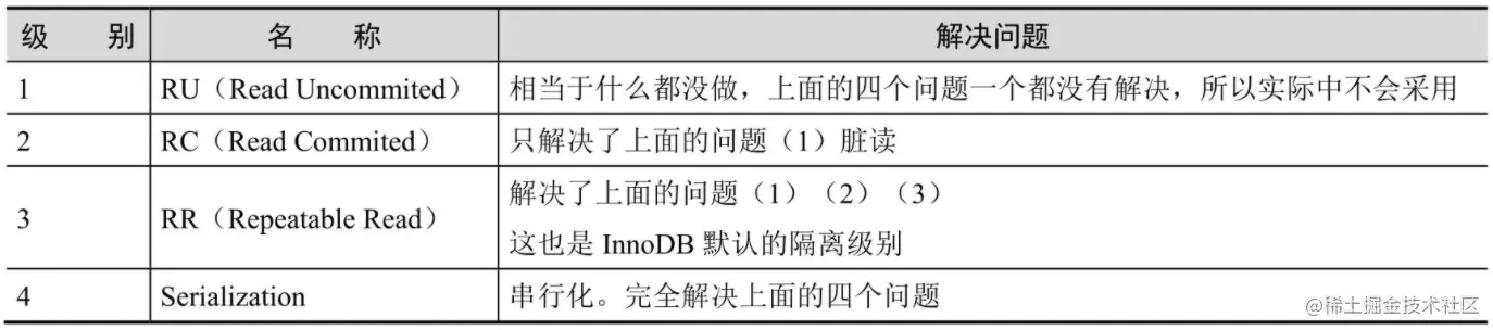 - 读未提交: 读未提交隔离级别是不加锁的,所以它的性能是最好的。但解决不了任何事务并发问题。