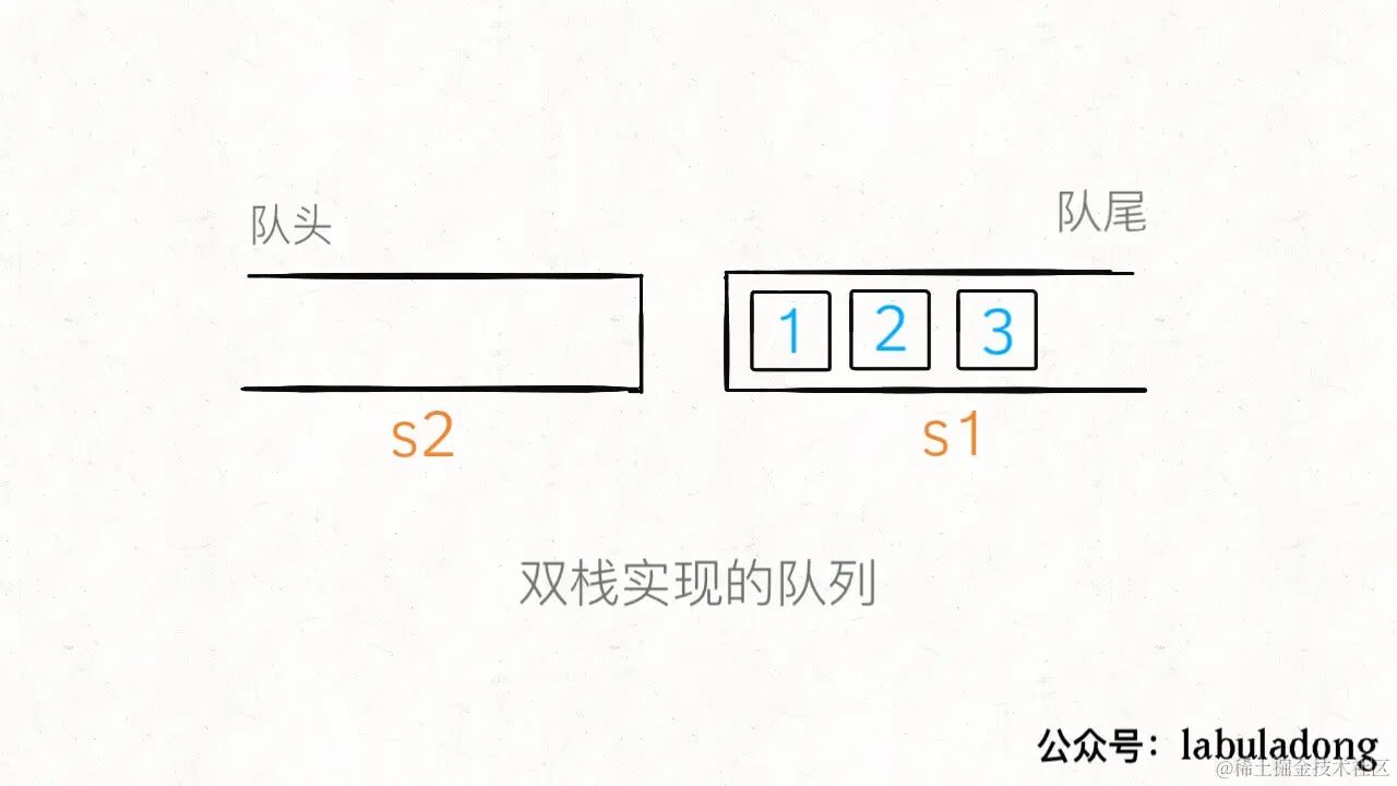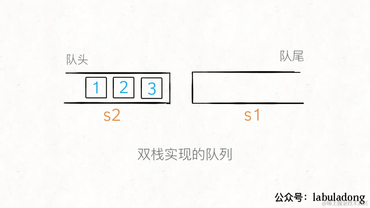 从栈 s1 搬运元素到 s2 之后,元素在 s2 中就变成了队列的先进先出顺序,这个特性有点类似「负负得正」,确实不太容易想到。