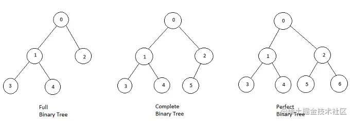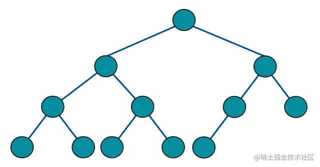 说句题外话,关于这两个定义,中文语境和英文语境似乎有点区别,我们说的完全二叉树对应英文 Complete Binary Tree,没有问题。但是我们说的满二叉树对应英文 Perfect Binary Tree,而英文中的 Full Binary Tree 是指一棵二叉树的所有节点要么没有孩子节点,要么有两个孩子节点。如下: